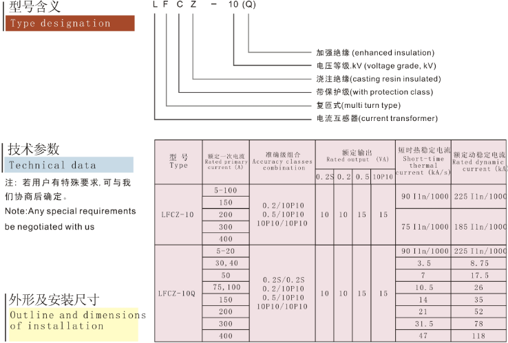 Current Transformer Type LFCZ-10Q